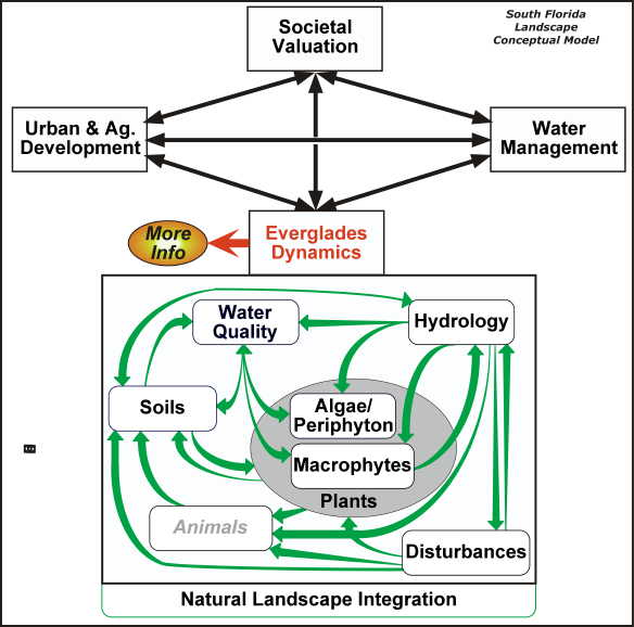 As E.P. Odum (one of the "fathers" of ecology) put it, an ecosystem is more than the sum of its parts. The ecosystem feedbacks, or interactions, among the physical, chemical, and biological components of the Everglades landscape are fundamental to the dynamics of this complex system. Using a simple framework, we believe that insights into the basic interactive processes aid in better understanding the system behavior as a whole.