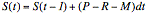 where S(time) is the standing stock of periphyton (g C m-2) at time t or t-1, P is the gross primary production gain (g C m-2 d-1), R is the respiration loss (g C m-2 d-1), M is the mortality loss (g C m-2 d-1), and dt is the time interval (days). The actual rates are products of the periphyton stock and maximum specific rates that are constrained by control functions: